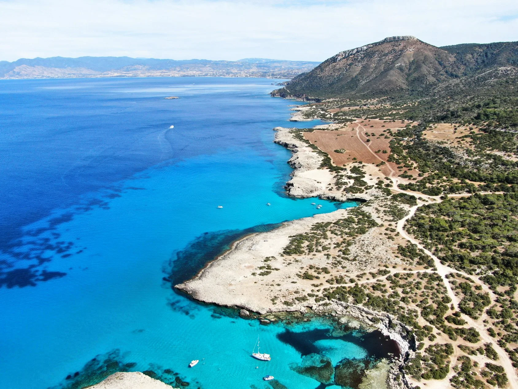 The beach includes sun-beds and showers like on most beaches here in Cyprus - and two little shop’s, “the Bay - Bites and Brew and The White Kiosk”. Sell snacks, cold and warm, homemade sandwiches, and a variety of alcoholic and non alcoholic drinks. I am sitting at the table in front of the Van shop, slurping my coffee before we head back into the water for another dive on this beautiful and sunny day.