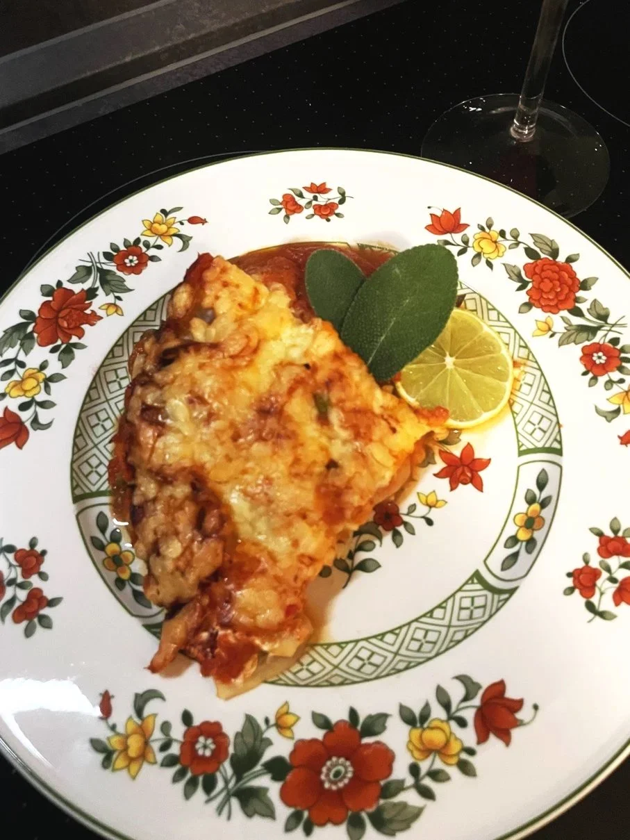 The one thing I have learned over the last 20 years working in restaurants is that time is king. Be patient! Today I am making the sauce, and tomorrow I will chop all the veggies, heat up the sauce, and layer the lasagna, then put it in the oven for 35-40 minutes at 180 °C, top and bottom heat.